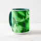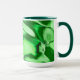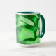 Bild med grönt och mörk tittar som något skuggande, med böjt linjer som liknar dunkar eller en del rött metall.