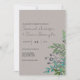 En charmerande botanisk bröllopsinbjudan med ett skogstema grönt foliage löv, bär och litet grenar på en blek, med grått av skiffer. Denna enkla, gedigna utformning skulle vara lämpligast för en trädgård, vår, utomhus eller en bröllop-ceremoni som kallas botaniskt.