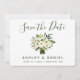 Grönten Modern vattenfärgsfärgad Blommigt och Vita Bouquet Spara datumkortet för Förlovning