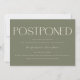 Att skjuta upp en stor händelse som bröllop kan vara stressande, men du kan fortfarande se snyggt med denna moderna och minimalistiska förändring av planmallkortet. Det står "senarelagt" i snyggt och ett märkbart teckensnitt överst, följt av information om evenemanget och ånger. Bakgrunden är sage grönt.