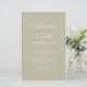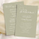 Ett enkelt ceremoniprogram i Bröllop, papper lakan-mall. med elegant, minimalistiskt, enkelt, kalligrafiskt skript med välkommen typografi, i en botanisk sage-grönt och ett klassiskt stil.