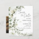 Meddela din speciella dag med en vacker budgeteukalyptus spara datumkortet! Sälj gröna par perfekt med en fantastisk vattenfärgsdesign som skapar ditt eget fantastiska och unika utseende. Ta med ett foto av personligen av de två för att göra kortet ännu speciellare. Säg till gästerna att de inte vill missa bröllop med ett av de här unika datumkorten.