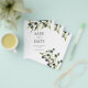 Meddela din förlovning med den här moderna budgeten spara datumet lakan. Den har min ursprungliga vattenfärgade olivgrej från gren. Alla färger kan anpassas för att passa ditt bröllop färg-program. Använda mallen fält att anpassa med ditt namn och bröllop-datum. En elegant som ännu är botanisk design för bröllop. Om du vill se matchande bröllop-skrivarsvit går du till www.zazzle.com/dotellabelle