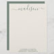 Ett "Elegant Modern Handwriter Sage Grönt Letterhead" blandar sofistikering med en ny, contemporary touch. Den mjuka grönten färg parad med ett flytande, modernt handskript skapar en snyggt och ett förfinat utseende. Detta brevhuvud är perfekt för företag som vill förmedla en känsla av elegans och kreativitet samtidigt som de behåller en professionell i sin officiell korrespondens.