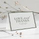 Den här eleganten, det gamla stil bröllop-pendeln som du har ett tack för att du har ett kort med en grönt gräns. Det finns en blandning av klassisk text och modern kalligrafi för en klassmässig och minimalistisk perfekt för ditt tidslösa, formella bröllop.
