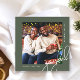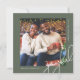 Den här contemporaryn har ett jullottagningskort med elegant med vit kalligrafi-skripttypografi och ett foto på en bakgrund med rustisk grönt. Kortets baksida är en klassad grönt och vit punkt mönster. Köp den här moderna helgdag om du vill ha mer snyggt färg och samordna tillbehör för utskick.