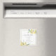 Gula blommor dekorerar den vackra sommareftermiddagen Spara datum magneter. Trädbröllopsmagneten accentueras med en mjuk grönt gräns och botaniskt löv under eleganten soliga ponnyer. Blommigt och ljus, perfekt för en utomhusceremoni.