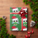 Julgåva till djur med en vacker, storögd uggla i grönt och rött med en julhatt. En mycket vismisk helgdag som slår in papper personlig med namn.