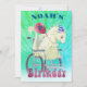 En söt grönt som dras i rullstol. draken har en party-hatt och på ballongen kan du sätta din ålder. Ändra enkelt informationen för din egen anpassningsbar-födelsedagsinbjudan.