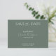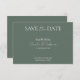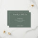 Den här moderna minimalistkorten grönt bröllop spara datum har kalligrafitext för vita skript på en grönt med temat bakgrund. En enkel och klasslig design. Anpassa datuminbjudan med din bröllop-information och använda "redigera med designad verktyg" på Zazzle för att redigera all text, typsnitt, bakgrundsbild färg, färg och alternativ för att ladda upp och lägga till ditt favoritfoto på inbjudan baksidan. Om du vill ha fler inbjudningar till grönt bröllop spara datum går du till vår samling grönt bröllop via https://www.zazzle.co.uk/collections/sage_green_wedding-119132603964077644