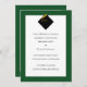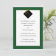 Klassisk studenten-annonsering med svart lock och guld-tassel på gröntens bakgrund.