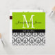 Anpassningsbar Damask Monogram-inbjudningar till Bröllop. Konst och design av Elke Clarke ©2010. Fler utformningar finns på WhiteWhimsicalWeddings.com och WhiteWhimsicalWeddings.blogspot.com. Anpassa med ditt monogram namn och bröllop färger. Lägg till all bröllop-information på kortets baksida med hjälp av Zazzles anvisningar på användan.