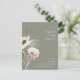 Den här Whimsical Wildblomsage Sage-Grönten sparar datuminbjudan vykort är perfekt för din enkla, elegant boho bröllop. De minimalistiska vildblommorna i vattenfärgen kommer att bidra till att förverkliga din vision! Utformningen av söt vita blommor och blommor från guld, med beröring av lila och gult, kommer säkert att fullborda er minimala falldröm från blommigt bröllop! Behålla den som den är, eller välj att anpassa den med dina foton! Du kan också titta på andra saker i den här samlingen för att verkligen föra samman hela bröllop!