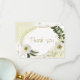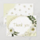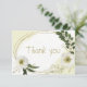 vita blommor och blommor från guld med romantisk grönt löv botaniskt tack som du kort. glitter och foliedetaljer simuleras