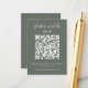Gör din bröllop OSA processaa sömlös med vårt QR-kort för OSA. Det här anpassadet har ett modernt, vitt tecken med djup grönt i skogen. Utformningen innehåller ett textområde för anpassadet och ett utrymme för att skapa en unik QR-kod för gäster som enkelt kan OSA via sina smarta telefoner. Gå till alternativet "personalisera", lägg till webbadressen för bröllop i det angivna området och en QR-kod genereras på designen bara för dig. Gör din speciella dag ännu mer minnesvärd med detta chic- och funktionskort i bröllop.