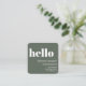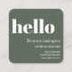 Anpassadets affärskort av skogsbrukets grönt, med HEJ och namn, yrke, webbplats och social-uppgifter. På baksidan finns en skannerbar QR-kod. Om du vill skapa en ny QR-kod på designen som länkar till din egen webbplats klickar du på "Anpassa den här mallen" Lägg till din URL-medieferens adress eller social i det angivna området och en QR-kod skapas bara för dig.
