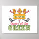 En söt emerald och rosa diamantsmyckad krona, ett par rosa hanterade kvinnors golfklubbar och en golf boll på en garanti på en kvinnlig golfgolfbeläggning poster som säger drottning av Grönten. En söt gåva till en kvinnlig golfspelare, golftränare eller flickors golflag. Designad av Chrissy H. Studios, LLC.