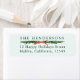 Den här returadressetiketten har en grönt gräs träd gräns med ett rött band.