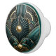 Gorgous Art Deco-bild av ett geometriskt guld, svart och turkotiskt keramiskt knopp. Den här vackra, mycket detaljerade Art Deco-knoppen skulle vara härlig på vilket kabinett som helst, eller dresser i ditt hem. Söt granater av teal, turkos, svart och guld.