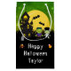 Den här roligten och den här skämtsamma presentpåsen kan vara personlig med ett namn eller en titel, som dotter, barndotter, brorson, brorson osv. Den har söta Frankensteinmonster bredvid ett korkat hemsökt hus. I bakgrunden finns ett fullt med fladdermus och en grönt kväll himlar med stjärnor. Det här är perfekt för Halloween.