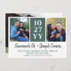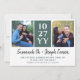 Spara datumkortet på dubblan med två foton på ena sidan och ett stort foto på den andra. Lägg till ditt bröllop-datum i fetstil, vitt brev mot gröntens bakgrund. Namnen i ett charmigt svart penselskript.