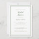 Enkel grönt och chic med vit inbjudningskort för möhippan-design har en enkel contemporary som minimalistisk utformning med en dubbla ram gräns i en sage-grönt på en skarp vit bakgrund. Anpassa utformningen av möhippan för möhippa med dina uppgifter i trendigets text och skript. Baksidan matchar i rustik grönt. För bästa resultat ersätter du mallinformationen med egna detaljer som lämnar mellanrum mellan stycken som i exemplet och använda allt nedre brev i fodral där det anges. E-post invitationsuites@gmail.com med frågor eller anpassningsbar.
