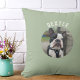 Modern, enkel, sage grönt dekorativ kudde. Fullständig personlig och anpassade med husdjuren namn och foto skapar en idealisk gåva till en djurälskare/ ny gåva till husdjur. Koordineringsposter som är tillgängliga för matchande färg.
