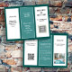 Affärsverksamhet, grönt och logotyp trefaldig broschyr om . Anpassa sex avsnitt, tre framtill och tre baktill med vit och svart text. Typsnitt skrivs ut tillsammans med ett skript som är lätt att läsa. Inkludera en QR-kod och en logotyp-bild. Lägg till ett personligt foto eller företagsfoto på sida två. Det finns mycket textutrymme för arbetstid, för avsnitt och för butiksplats. Fold efter köp i tredjedelar. Dubblan kontrollerar all text eftersom den inte kommer att vara korrekturläsad innan den skrivs ut.