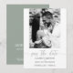 Sage grönt bröllop spara datum-kort innehåller ditt foto och dina uppgifter i chic på framsidan och mer information om bröllop på baksidan. Se till att kontrollera din beställning dubblan innan du lägger till den i din kundvagn eftersom det du ser på skärm är vad som skrivs ut. Live Design Service kan hjälpa dig med designlayouten om det behövs. MER design i vår butik.