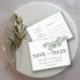 Spara datumvykortet enkelt och elegant. Med grönt-eukalyptus med klassisk och snyggt sparar du datumet calligrafi. Enkel att anpassa med din unika information.