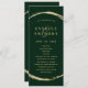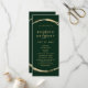 Det här bröllopsprogrammet har en faux-guld-cirkel i ram med elegant och enkel kalligrafi med en bakgrund för grönt av skog.