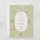 Den här bröllopsinbjudan har en känslig bakgrund för grönt, som visar en känsla av sofistikering och rikedom. Den mjuka gröntens nyans skapar en fängslande bakgrund som anger tonen för ett minnesvärt firande. I centrum av inbjudan står en ovalformad text ram ut, vilket ger en graciös brännpunkt. Ram är vackert utformat och utesluter en känsla av förfining och elegans. Dess form gör att det blir en aning unikt, vilket gör att mottagarna uppmärksammas. Omger texten ram, är känsliga och rustiska vattenfärgade vilda blommor konstlat ordnade. Dessa charmerande blommor, som avbildas i mjuka nyanser, framkallar en känsla av naturskönhet och lugn. Vattenfärgstekniken ge ger dem ett milt och eteriskt utseende, vilket förbättrar den romantiska ambitionen i inbjudan. Kombinationen av sidans bakgrund, ovaltexten ram och de roliga vattenfärgsblommorna skapar en visuellt bedövande bröllopsinbjudning som utstrålar elegans och en aning stollig. Det sätter upp scenen för ett romantiskt firande fyllt av naturskönhet och hjärtliga stunder. Skapat av Simply Farmhouse Press är en del av Rustic Wildblomme Ram Sage Grönt bröllop site.