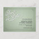 Den här vintagen har fortfarande en inbjudan till en modern chic en nyck, mjuk grönt som tonar fram elegant enkel typografi. Designad enbart för Zazzle, den här bröllopsinbjudan säger rent romantik! Det finns också ett matchande inbjudnings- och svarskort. Lägg till en bröllopsstämpel för kuvert från vår omfattande postsamling för att matcha din inbjudan perfekt. Kuvert, kuvertlinjer och Pocketfold®-höljen finns som tillägg (på högerna) på zazzle.com