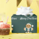 Papper med ett leende gingerbröd Santa, i grönten kostym och ord "God jul". Ord kan anpassas som du vill. God jul!