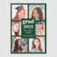 Skicka ett modernt fotokollage studenten-kort till din familj och dina vänner i personligen för att wow dem. Den här moderna malldesignen innehåller sex foton som du kan ändra till en egen ram i grönten. I mitten i vit typografi finns "Grad" i ord med året, ditt namn och din skola att anpassa sig till. Kortets baksida är grönt. Designad av Susan Coffey.