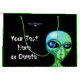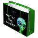 Ge är en gåva i stil med öga som fångar utomjording och UFO-temapåse. Den här designen har en grönt utomjording med stort blått ögon. En liten sågsugare stil UFO/UAP-hovrar överst på en svart stjärna och utrymmesbakgrund. I mitten på både fram- och baksidan finns en punkt för din egen text. Standardtexten är i vit utlänning som utskrift. Den här väskan är helt anpassade, du kan ändra text, teckensnitt, färg och bakgrundsaccent färg (standardsidans färg är grönt). Slå bara knappen Anpassa om du vill mata in en egen text, eller Redigera ytterligare om du vill göra andra ändringar i stil. Denna konstruktion finns också på klistermärken och kan överföras till andra produkter på Zazzles marknadsplats. Gör en underbar gåva eller ett party-objekt till utlänningen, NHI, UFO eller science fiction älskare!