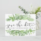 Grattisar på din förlovning! Spara datum meddelande är det första stora steget i planeringen av bröllop processaa! Kom ihåg att spara datum meddelande kommer att ange tonen för din stora dag, se till att imponera på gästerna med en oförglömlig design och en titt på vad som är för komen! Omgiven av fintvätt och trendig grönt löv och satt på vit bakgrund, är denna design öga och mycket vacker. Modern och enkel besparing av datumet vykort visas i mitten av lövet när text överlagras i svart borste modern skrivskyddad typografi och ett vykort för mall är på baksidan. Alla textstorlekar stil, färg, kan också ändras för att passa dina behov. Kontakta oss eller besök vår butik om du vill ha hjälp eller anpassningsbar (utan avgifter)