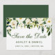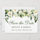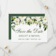 Grönt för vattenfärgen Blommigt och vit Spara Grönten för datumkort för Förlovning bakåt - Grönt skript