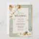 Vackra färgader av neutralt i olika blomningsstadier, gjorda i mjuka vattenfärger med blandad grön grönt och krämbakgrund. Faux guld ram med guld glitter-splotches bredvid denna vackra inbjudan, Perfekt för vilken säsong som helst bröllop.