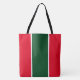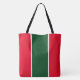 Den här skarpa, sportsliga designen har ett kulligt centrum för grönt rand, som har lyfts fram med slender vita ränder mot en pulserande julröd bakgrund.