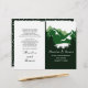 Gröntens berg och konjfleras bröllopsprogram. Ett trendig till elegant bröllop-design med ett bergsområde genom barrträd och namn i handskriven stil. Insidan innehåller mörk grönt och vitt gräns med polka dots och vitt ramar med din text.