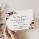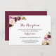 Den här grönten är ett bröllopsmottagningskort för burgiga blommigtar en perfekt för ett rustiskt bröllop. Utformningen har grönt i elegant, , lila, rött och burgundt, handritade blomketter, inspirerande naturskönhet.