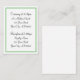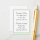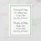 Bekvämt 2,5-tums x 3,5-tums informationskort för dina gäster i bröllop som kan fortsätta på bröllop-dagen, med ceremoni och mottagningstider och platser. De passar lätt in i de flesta väskor och manar kostym fickor. De här korten är designade med en enkel grönt och vit kontur.