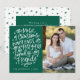 Skicka en magisk semesterhälsning till vänner och familj med vårt festliga fotokort för helgdag. Uttrycket "Julens magi upphör aldrig, dess underbarare gåvor är familj och vänner" visas i ett vitt, handskript med gröntens bakgrund. Anpassa framsidan av det söta helgdag genom att lägga till ditt namn, år och foto. Kortet återgår till att visa anpassningsbarnas meddelande i vit text i grönten ram. Bakgrunden är en mönster av gröntens stjärnor och punkter.