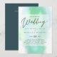 Modern bröllopsinbjudan med textmall fält på båda sidor och ett moln av grönblått färg.