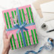 Grönt skidar på snö med rosa papper julomslutning.