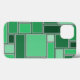 Det här telefonfodralet har en Bauhaus-design av rektanglar som bildas med grått linjer fyllda med olika gröntar.