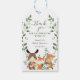 Anpassa denna söta gröna skogsbaby shower presenttagg med dina egna ord enkelt och snabbt. Denna tagg har söta skogsdjur med gröna blad.
