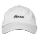 Groom Cap visas i vitt med svart broderad text. Anpassa det här objektet eller köp som det är.