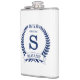 Dessa 8 oz-flaskor är perfekt för rummen. Det är traditionellt men modernt med en blå lagerandekrans och banderoll med datum, titel/jobb och första början och första namn allt i blått. De skulle vara underbara för en reklamfest eller helg. Ta en till alla i brudens sida - de tar kärlek! Titeln kan lätt ändras till bäste man, groomsman, vaktmästare osv.